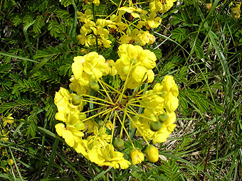 ![]() 真上からみると、円のように咲いています。ハナバチやコガネムシがたくさん集まっていました。 |
