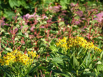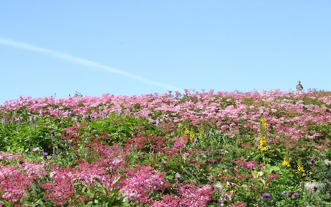 ![]() メタカラコウ(黄)、シシウド(白)、クガイソウ(青)、シモツケソウ(ピンク) |