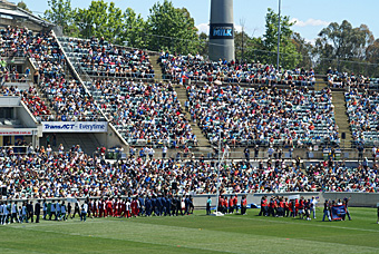![]() 開会式が始まり、地元ACT(オーストラリア特別区)の子どもたちによるマスゲームが行われました |
