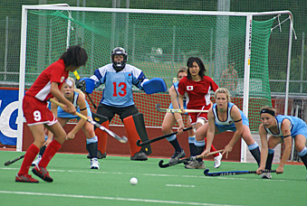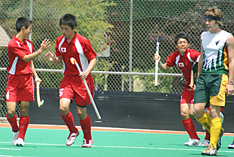 ![]() ペナルティコーナーからのこぼれ球をきっちりシュート |
