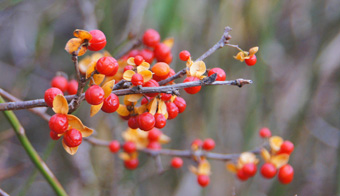 ツルウメモドキも鮮やかに赤く色づいていました。 |