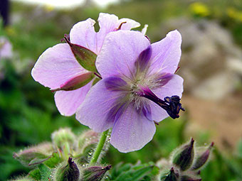 オオバギボウシの葉っぱに混じってグンナイフウロがたくさん咲いていました。